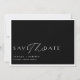 Elegant & modern save the date cards, perfect to announce your new wedding date. Black background with an elegant white frame. "Save the date" is beautifully designed in white. Customize with your names, date, and location. The background color, frame, and text can be changed to match your wedding colors.