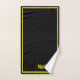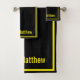 Modern Elegant Black Yellow Monogram Script Name Bath Towel Set