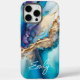 Modern Elegant Blue Gold Marble Personalized Name Case-Mate iPhone Case
