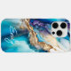 Modern Elegant Blue Gold Marble Personalized Name Case-Mate iPhone Case