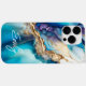 Modern Elegant Blue Gold Marble Personalized Name Case-Mate iPhone Case