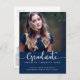 Modern Elegant Blue Graduation Script Photo Announcement Postcard