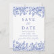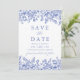 Modern Elegant Blue Vintage Floral Save the Date Invitation