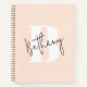A handwritten monogram design in an elegant style in black informal casual script typography over a blush bold pink initial oversized letter. The text can easily be customized for a design as unique as you are!