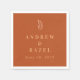 Simple Modern Elegant Boho Wedding paper napkin in burnt orange background and a minimalist leaf drawing.