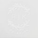 Custom-designed wedding monogram embosser stamp featuring elegant hand drawn style botanical wreath with couple's initials and wedding date. Perfect for wedding save the dates, envelops, wedding favor packagings and more.