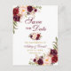 Modern Elegant, Watercolor Burgundy Marsala Floral, Save The Date Engagement Postcard