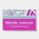 Cute Monogram Initial Teal Magenta Agate Name Badge. Agate crystals and geodes continue to be a favorite trend! This print features and up close image of a teal or turquoise and purple or magenta pink geode stone, complete with little crystals and white banding. Accented with vibrant color blocking to give it a modern and trendy look. Add your initial to make it your own.