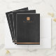 Luxury exclusive looking office or personal monogrammed pocket folders featuring a faux copper metallic gold glitter square with your monogram name initials and a sparkling stripe over a stylish black faux leather background. ++++++++++++++ Suitable for small business, corporate or independent business professionals, personal branding or stylists specialists, makeup artists or beauty salons, boutique or store managers. +++++++++++++++ Please note that the leather texture and glitter sparkle effects are PRINTED.