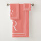 Modern Elegant Coral Pink & White Monogram Bath Towel Set