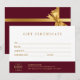 Modern minimalist business gift certificate featuring your custom logo, business name, and message in a clean red and gold design. Perfect for small business owners, salons, spas, boutiques, or corporate gifting. Personalize with your own text and company branding. A simple, professional way to offer gifts, promotions, or store credit. Elegant and custom-made to match your unique brand style. Great for holidays, birthdays, thank you gifts, or special events.