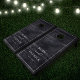 Black wooden corn hole set featuring your custom names and wedding date alongside a trendy script with flourishes on a printed dark wood backdrop. Enjoy this fun outdoor family game, perfect for an outdoor summer or barn wedding, a gift for newlyweds, or a housewarming party.