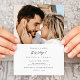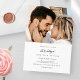 Plain white envelopes are included with paper invitations and will come to fit the invitation size you select. If you don’t need the envelopes, you may choose to not receive them by selecting the dropdown below "Envelopes" and choosing "None." If you’d like to have a design on your envelopes, you can browse all of these available envelopes to find the design that complements your Customizable Modern Chic Script Wedding Photo Invitation.