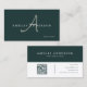 Modern Elegant Dark Green Initial QR Code Business Card