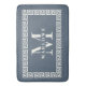 Modern Elegant Dusty Blue Greek Key Frame Monogram Bath Mat