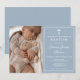 Modern Elegant Dusty Blue Photo Baptism Invitation