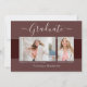 Beautiful 2 photo 7"x5", graduation announcement cards. Featuring modern text with elegant calligraphy script. Your photos are thinly edged with light gray trim for that extra "Pop". The design is complimented with regal background shades of dusty rose. The back of the card offers a personalized announcement text space for that special graduate. To see more items like this, visit my store here at "www.Zazzle.com/LakeViewCardCo". Thanks
