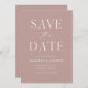 Announce your upcoming nuptials in style with our elegant, modern QR code save the date card. The non-photo save the date features "Save the Date" in white serif and script fonts with a dusty rose background. Personalize the front of the save the date card by adding your names, wedding date, wedding location, and other wedding details. The minimal save the date card reverses to feature your custom QR code with wedding website and custom text. Perfect save the date for both modern formal and casual weddings!