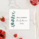 This paper napkin is decorated with a stylish watercolor eucalyptus sprig with elegant typography.