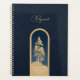 Stay organized and inspired with this elegant personalized spiral planner, blending timeless sophistication with a modern aesthetic. The deep blue herringbone background creates a professional yet approachable feel, while the stunning gold accents add a touch of luxury. The front cover features a graceful script name personalization above a serene woodland silhouette, framed by an arched window design that evokes calm and focus. Beneath the illustration lies a beautifully typeset Shakespeare quote: “This our life, exempt from public haunt, finds tongues in trees, books in the running brooks, sermons in stones, and good in everything.” — As You Like It, grounding this planner in both nature and wisdom.