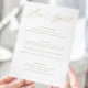 Modern and Elegant Gold Wedding Menu: This romantic wedding menu features elegant calligraphy and simple lines.
