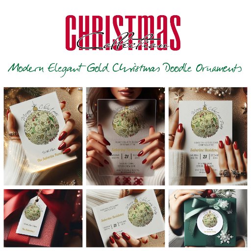 Modern Elegant Gold Christmas Doodle OrnamentsDesigned by Houria Sabrine