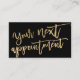 Modern elegant gold foil script typography black appointment card