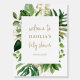 Modern botanical Baby Shower Welcome Sign with a geometric frame surrounded by watercolor painted tropical greenery and faux gold leaves. An elegant and gender neutral design that works for a boy or a girl baby shower. This Baby Shower Welcome Sign is printed on sturdy foam board for easy display.