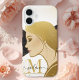 Add a touch of luxury and sophistication to your phone with this stunning, artistic design! Featuring a stylized female portrait in gold accents, geometric patterns, and a customizable monogram, this case blends modern elegance with timeless beauty.