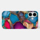 Modern elegant gold marble stone iPhone 16 case. This stylish iPhone 16 case showcases your name in a beautiful calligraphy script, set against a sophisticated blue, red, purple, pink and gold marble design. A perfect personalized gift for birthdays, Mother's Day, Christmas, or any special occasion for your mom, sister, wife, girlfriend or best friend.