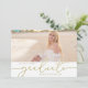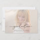 Celebrate your graduate with this modern, elegant gold script graduation design featuring refined metallic-style typography and a customizable photo layout. Perfect for high school or college graduation parties and announcements, this timeless design highlights your senior portrait with a sophisticated minimalist style.