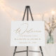 Simple and modern rehearsal dinner sign featuring "Welcome" displayed in a chic gold calligraphy script with a white background (or color of your choice). Personalize the gold wedding rehearsal dinner sign by adding your names and the date. The elegant rehearsal dinner sign was designed to coordinate with our Modern Elegance wedding collection and is available in other colors.