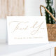 Elegant folded wedding thank you card featuring "Thank You" in a gold calligraphy script on the front with your last name displayed below. The inside of the gold wedding thank you card displays your custom thank you message and first names in white lettering with a gold background. Design coordinates with our Modern Elegance wedding collection.
