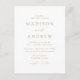 Minimalist, modern wedding invitation postcard featuring your wedding details in gold lettering with calligraphy script accents. The white background can be changed to a color of your choice. Personalize the back of the chic wedding invitation postcard with your return address, wedding website, images, etc. Designed to coordinate with our Modern Elegance wedding collection.