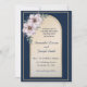 Modern elegant golden frame roses navy blue invitation