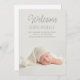 Simple, modern 2 photo birth announcement flat card. This stylish baby announcement features a full-frame baby photo, the text "Welcome" in an elegant script font, baby's name and birth details in a clean sans serif typeface. Backside with a custom photo and birth announcement text. Use the design template to create your own unique and unforgettable moment of remembrance for your family and friends. © y.BEE PAPERIE #ZazzleMade #birthannouncement #birthannouncementcard #babyannouncement