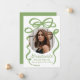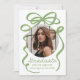 Celebrate your graduate’s achievement with this elegant graduation announcement, featuring a bold green bow and ribbon design on a white background. The graduate’s circular photo is beautifully framed by the bow, while "Graduate" is displayed in a stylish handwritten green script. Personalize with the graduate’s name, school, and graduation year for a meaningful and timeless touch. The back includes an additional photo and space for a custom message, making this design perfect for high school and college graduates. Share this special milestone with a fresh and sophisticated keepsake!