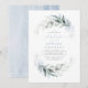 Modern Elegant Greenery Dusty Blue Baptism Invitation