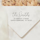 An elegant wooden return address stamp with your family name in a handwriting-style script, followed by your return address or contact details in classic serif typography. This design can be used for invitations, greeting cards, holiday mail, and more! Edit all of the text by changing the details in the template boxes. This is the wooden rubber stamp - choose the handle and ink pad options according to your preference! A self-inking version of this stamp is available in my store. Feel free to message me with any questions - just note we can't modify an existing order. View the collection link on this page or visit our store for more address stamp designs!