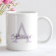 Start your day with a personalized touch using this custom name and initial coffee mug, perfect for treating yourself or gifting to someone special. Featuring a bold lavender initial layered with an elegant script name, this minimalist design adds style and personality to any coffee or tea routine. Whether you're looking for a unique desk accessory, a morning pick-me-up, or a thoughtful gift, this mug offers both charm and everyday function. It's the ideal birthday, Christmas, or Secret Santa gift for coworkers, friends, teachers, or family — and equally perfect for those who love a little personalization in their own daily rituals. The crisp white background and soft color palette make it versatile enough for home, office, or dorm settings. Whether you're buying it for yourself or customizing it for someone else, this monogrammed mug is a stylish way to enjoy your favorite drinks with a personal twist.