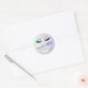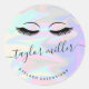 Gorgeous eyelash extensions round sticker design featuring colorful faux holographic texture, lashes and elegant calligraphy font.