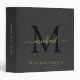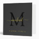 Modern Elegant Initial Monogram Black & Gold Text 3 Ring Binder