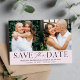 Announce your wedding date with this stylish, modern photo save the date card. The design features two of your favorite engagement photos with "Save the Date" in black serif and script fonts against a lavender background (or color of your choice). Personalize the minimalist save the date announcements by adding your names, date and wedding location. The card reverses to a solid light purple background or color of your choice. The simple save the date announcement is perfect for any wedding theme.