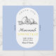 This elegant, modern Limoncello bottle label features a chic arched label design set inside a summer sky blue background. Trendy with vintage graphic and tones. For wedding couples or event hosts who want to say 'thankyou' in a special and meaningful way.
