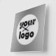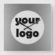 Modern Elegant Metallic Solid Silver Logo Square Wall Clock