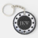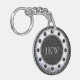 This sophisticated keychain features modern, elegant black and grey stripes and an easily modified monogram inside a rivet.