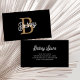 Modern Elegant Monogram Name Black Gold Script Business Card
