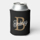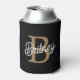 Modern Elegant Monogram Name Black Gold Script Can Cooler