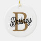 Modern Elegant Monogram Name Black Gold Script Ceramic Ornament