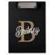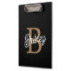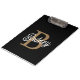 Modern Elegant Monogram Name Black Gold Script Clipboard